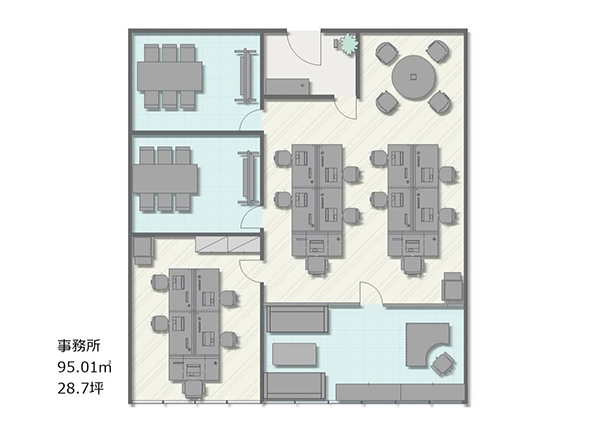 オフィスに必要な機能をどのように配置するのかを大まかに考えて、ゾーニング計画をたてていきます。