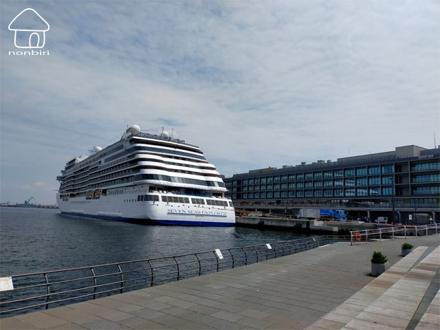 世界各国のクルーズ船が寄港する世界でも有数の客船ターミナルで、側面から見ると、